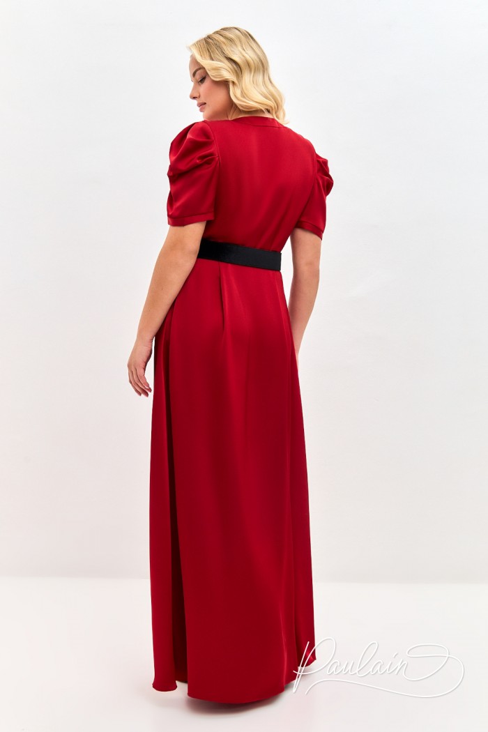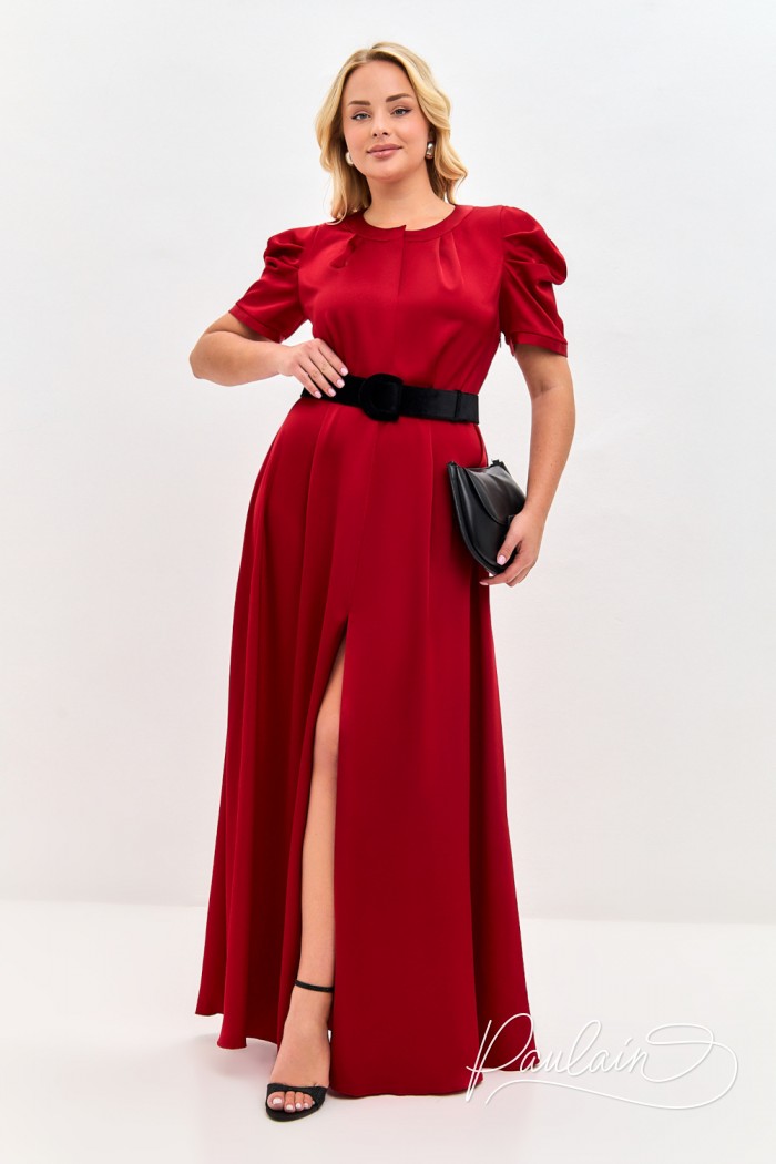 Глубокий и насыщенный оттенок бургунди не только находится в списке трендовых цветов 2026 года, но и дарит миру свою мощную энергию. Платье в этом оттенке станет главной точкой притяжения внимания и поможет создать по-настоящему эффектный образ. Силуэт платья лаконичен и не отвлекает внимания от насыщенного цвета, однако детали заставляют всмотреться в дизайн: классический круглый вырез дополнен потайной застёжкой, фантазийные рукава придают платью толику романтического настроения, а высокий разрез на юбке просто необходим, чтобы двигаться уверенно и смело!